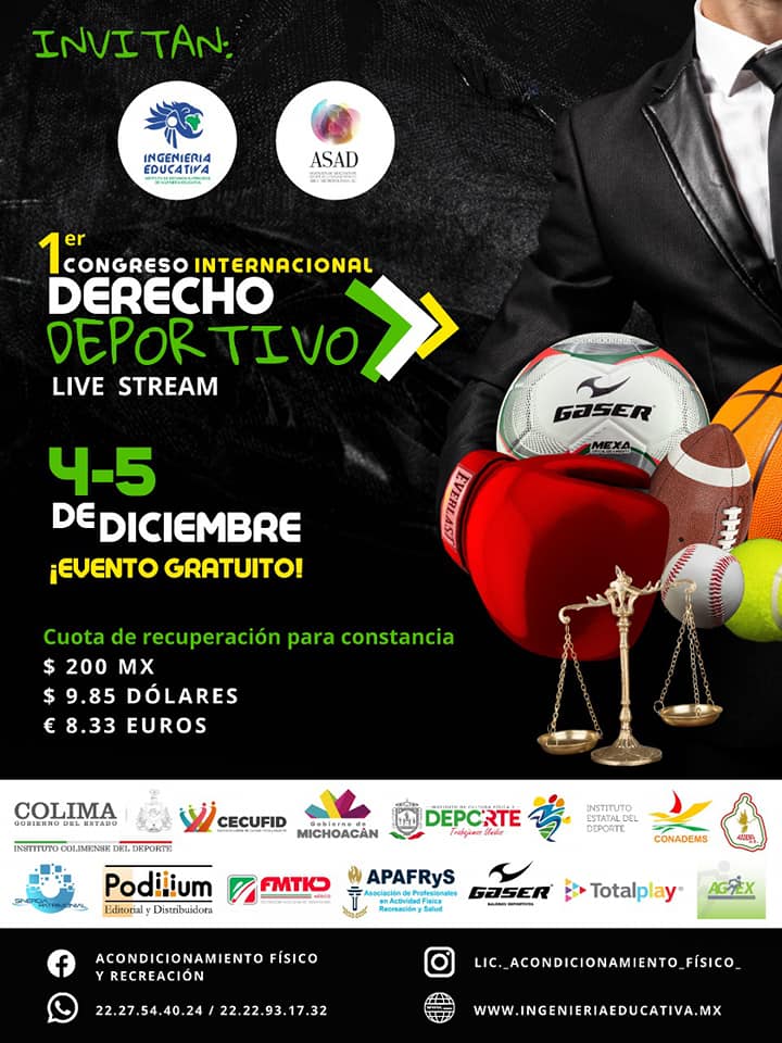 congreso Internacional de Derecho Deportivo On-Line el cual será gratuito por