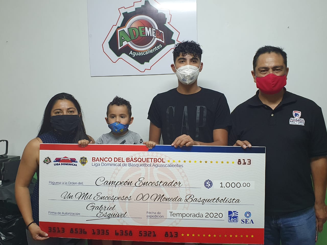 de la Liga de basquetbol Dominical de Aguascalientes, recibiendo un estimulo