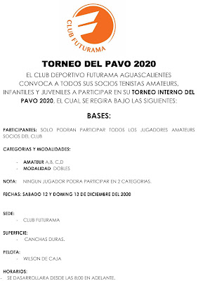 tenis del Pavo en su edición 2020 el cual se jugará de manera interna los días