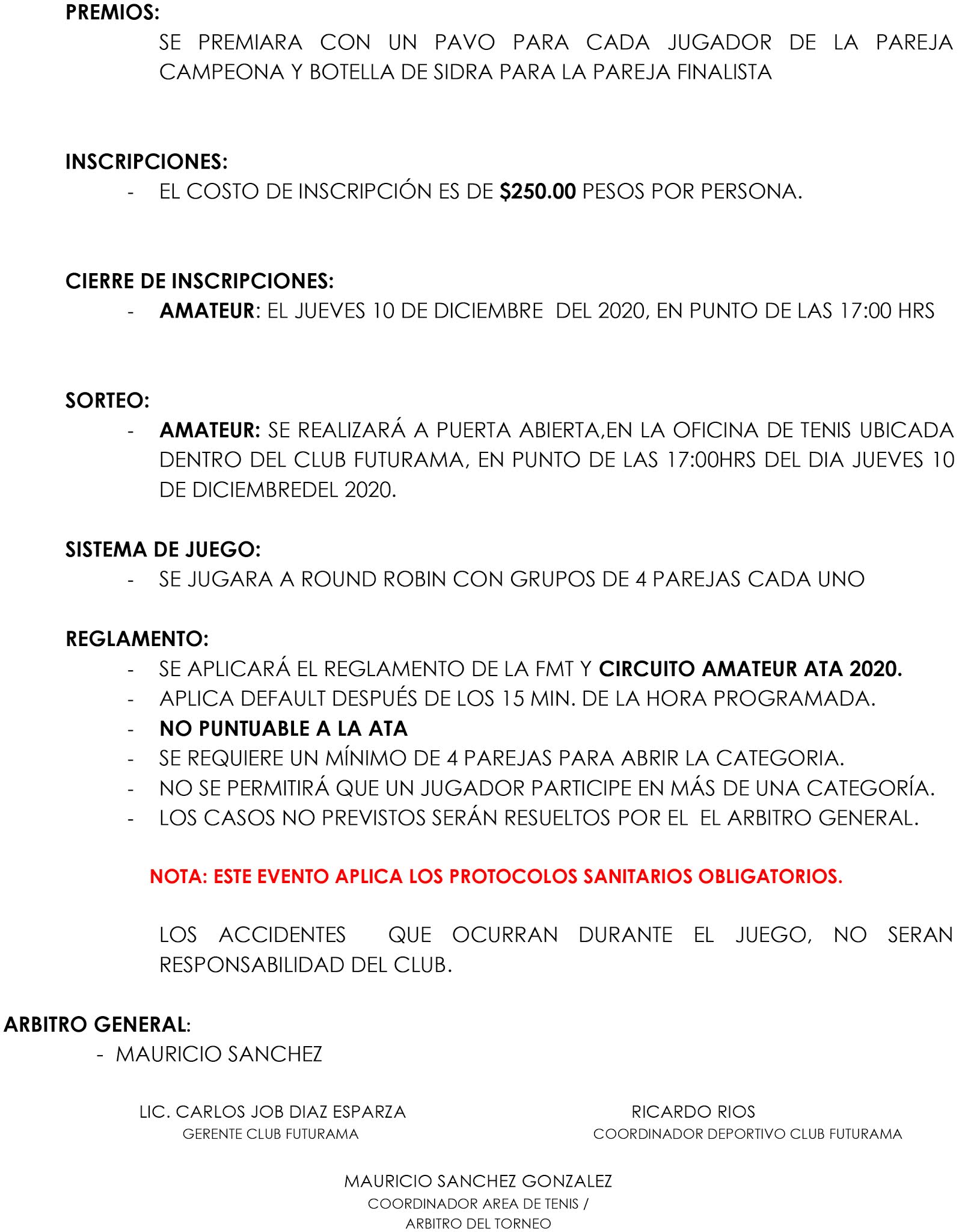 categorías amateur en los niveles A, B, C y D en su modalidad de dobles mixtos.