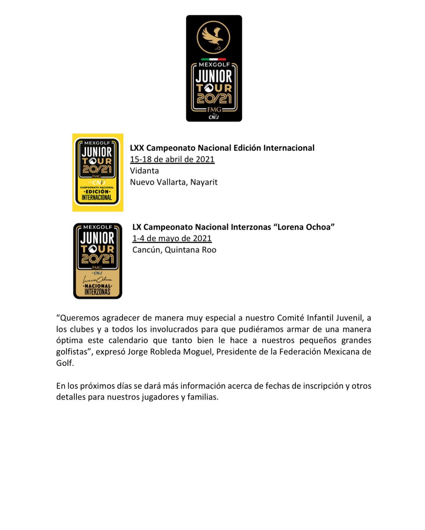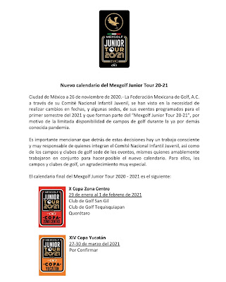 del Mex Golf Junior Tour 2021 el cual arrancará el 29 de enero, con la X