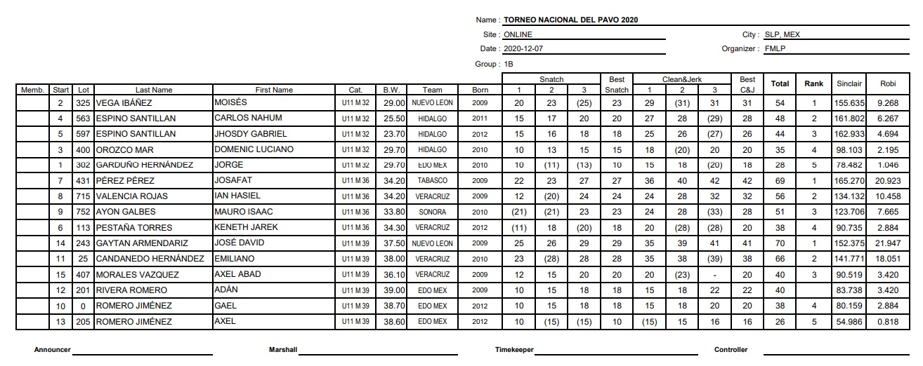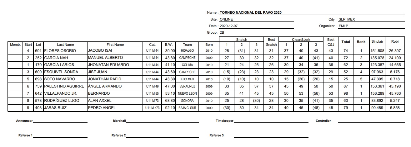 Nacional del Pavo 2020, en levantamiento de pesas, competencia que se realiza