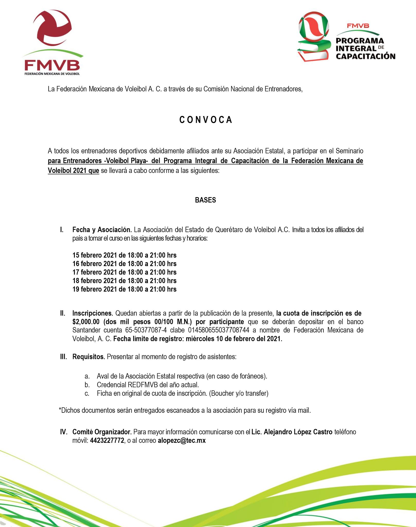 su Seminario para entrenadores de voleibol de playa el cual se tendrá de manera