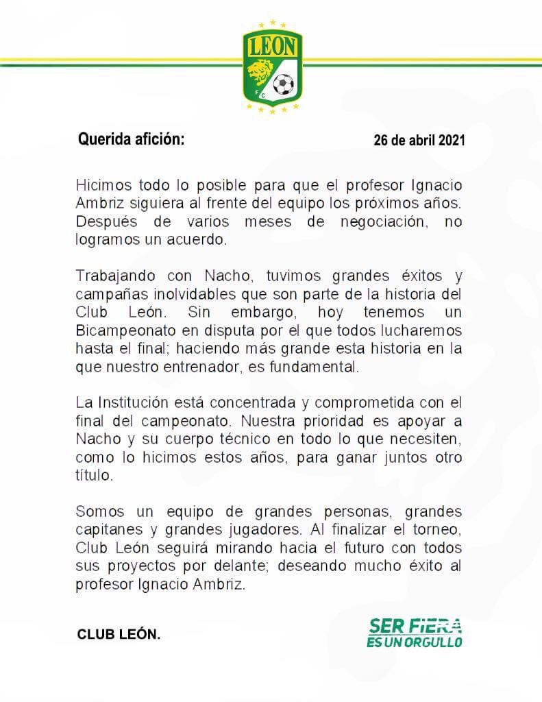Ambriz saldrá de León al finalizar el torneo