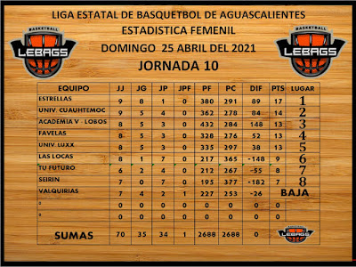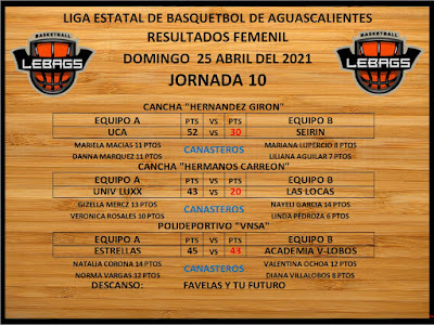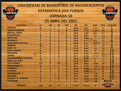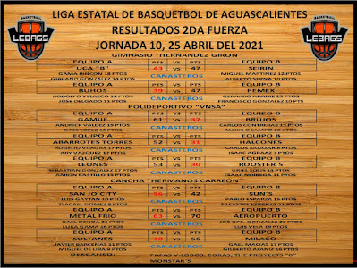 del torneo de Primavera 2021 de la Liga Estatal de Baloncesto de Aguascalientes.