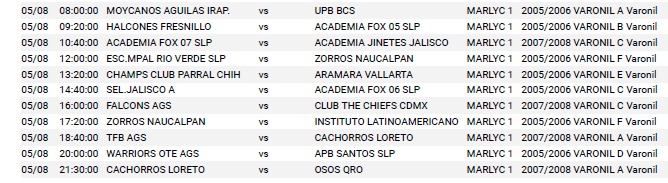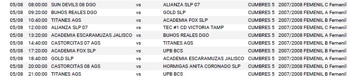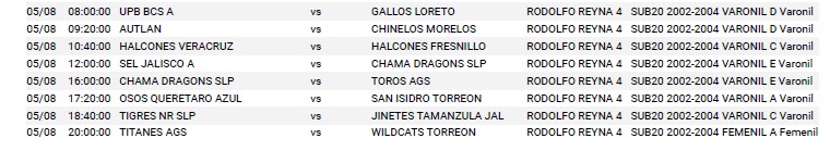 Rol de juego Copa Dunk sábado 8 de mayo