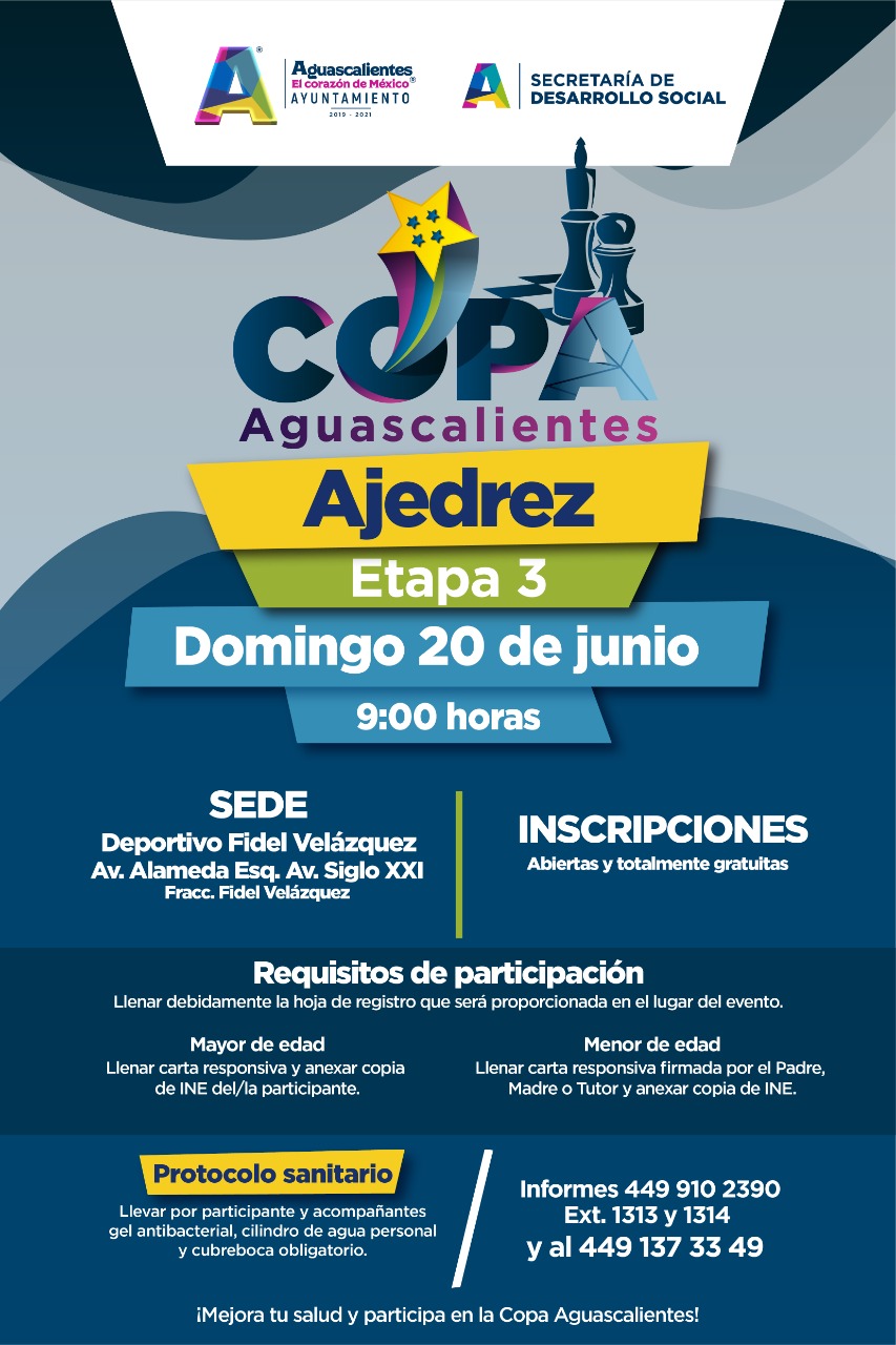 Debido al gran éxito que se obtuvo en las dos primeras etapas, el ajedrez regresa a la Copa que organiza la Dirección de Cultura Física, Recreación y Deporte del Ayuntamiento de Aguascalientes, el cual se tendrá en una categoría infantil y otra más libre en su modalidad mixta.