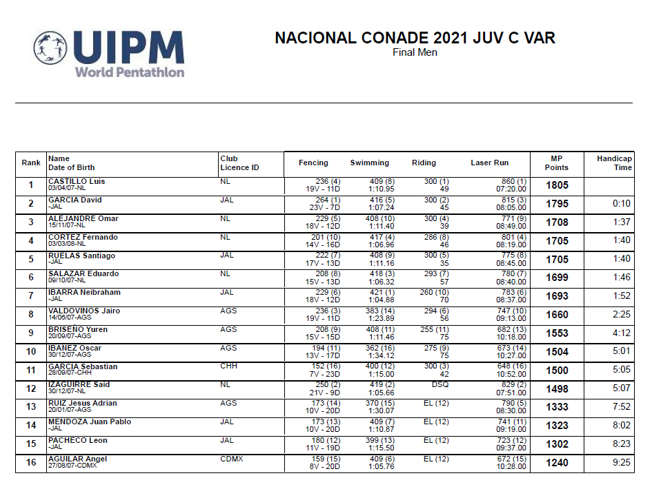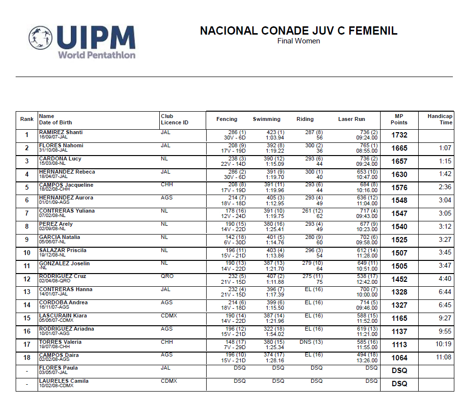 de los Juegos Nacionales CONADE en las competencias individuales en categoría C