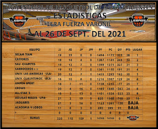 La quinteta de Estrellas en la rama femenil y Castores en la