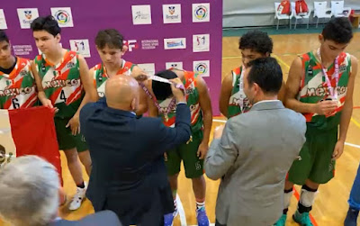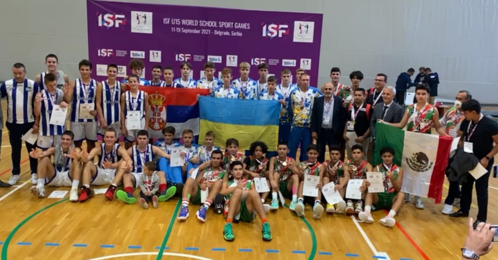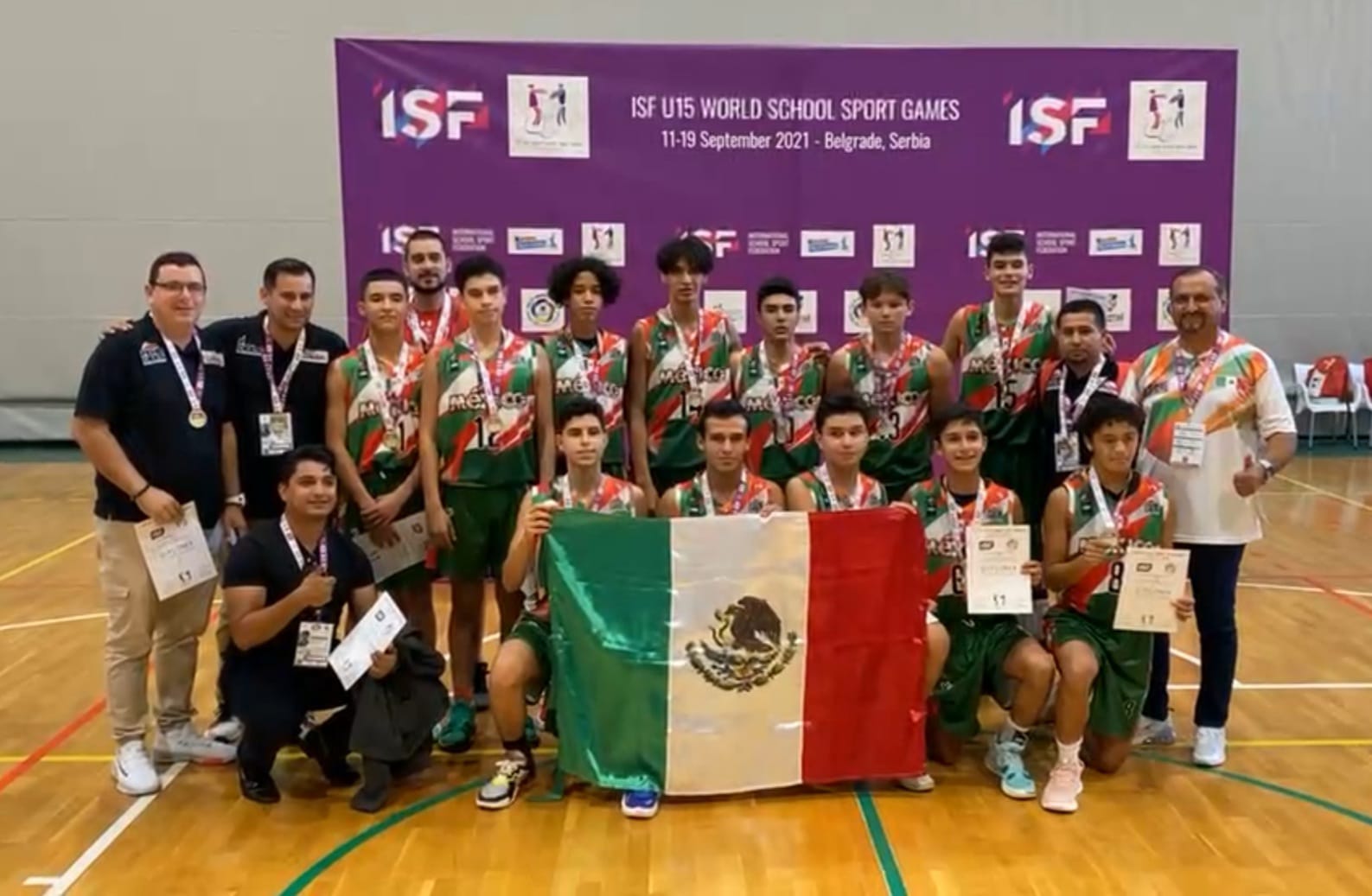 Escolares U15 de basquetbol tras vencer en la final a Serbia con marcador de 69