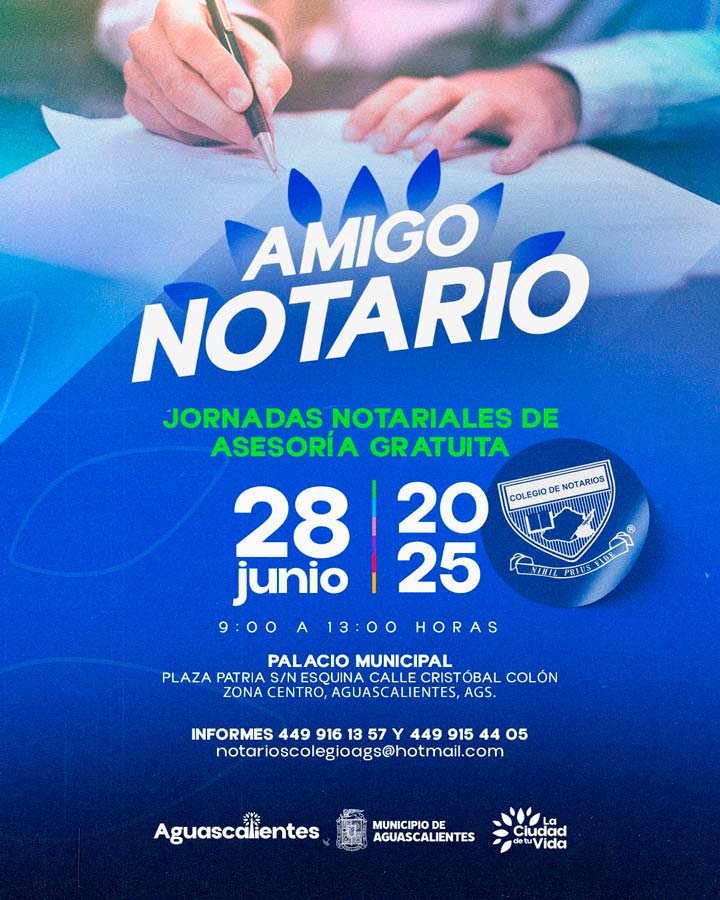 Para mayores informes se ponen a disposición los teléfonos 449 915 44 05 y 449 916 13 57 y el correo del Colegio de Notarios notarioscolegioags@hotmail.com