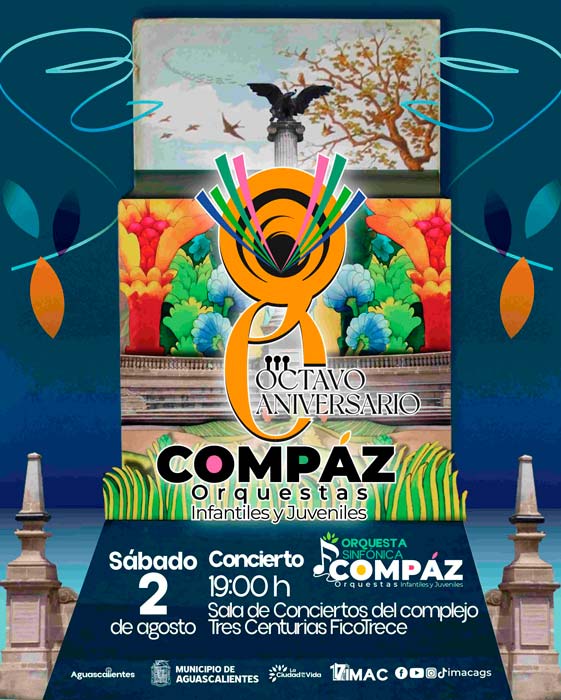 El Instituto Municipal Aguascalentense para la Cultura (IMAC) invita a la ciudadanía a celebrar el Octavo Aniversario de COMPÁZ, Orquestas Infantiles y Juveniles.