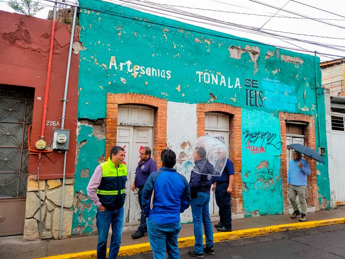 Durante el recorrido participó el arquitecto valuador del INAH, Juan Antonio Tapia Romero, ya que algunas fincas están catalogadas como patrimonio histórico.