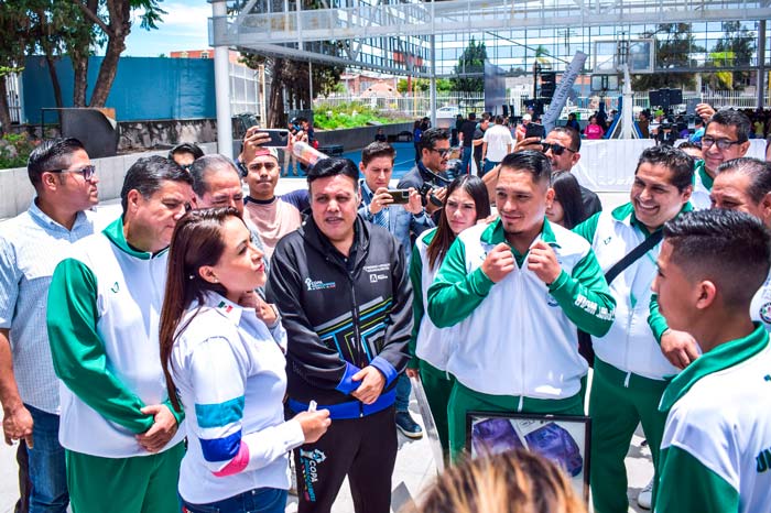 Los atletas estuvieron presentes en la entrega de uniformes de la Copa Aguascalientes en la Unidad Deportiva Rodolfo Reyna Soto.
