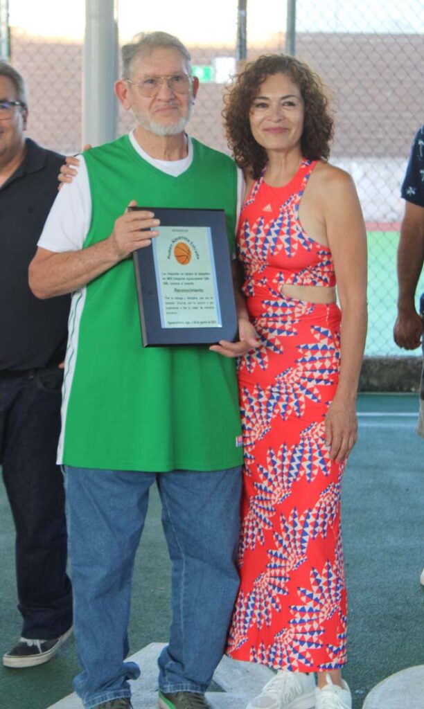 La selección de la Delegación IMSS 85-86, hizo entrega de un reconocimiento al entrenador Rubén Navarrete por su trayectoria en el basquetbol local, su entrega y pasión.