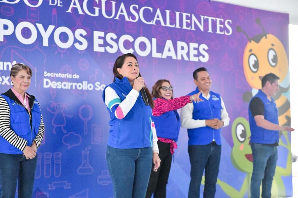 La gobernadora de Aguascalientes, Tere Jiménez, continúa con la entrega de útiles escolares, tenis y zapatos a estudiantes de nivel básico.