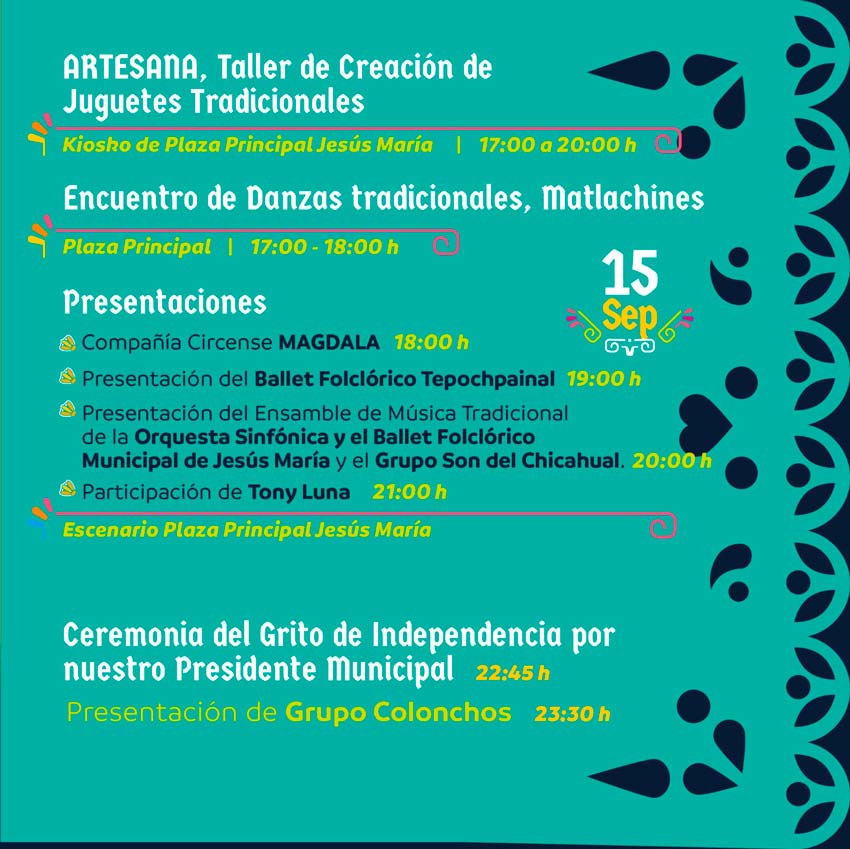 Habrá festejos patrios en todas las delegaciones con ⁠Tony Luna, Grupo Colonchos, ballet folclórico, Cocineras Tradicionales y más