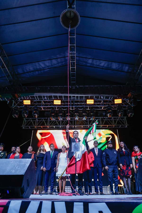 Al grito unísono de “¡Mexicanos! ¡Vivan los héroes que nos dieron patria! ¡Viva Hidalgo!, ¡Viva Morelos!, ¡Viva Josefa Ortiz de Domínguez!”.