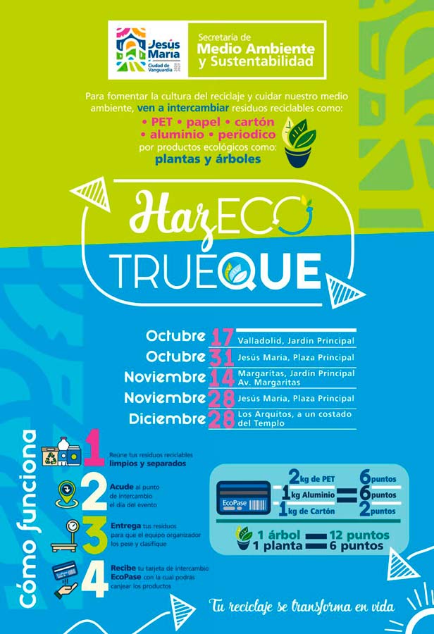 La Secretaría de Medio Ambiente y Sustentabilidad del Gobierno Municipal de Jesús María continúa intensificando el programa Ecotrueque.