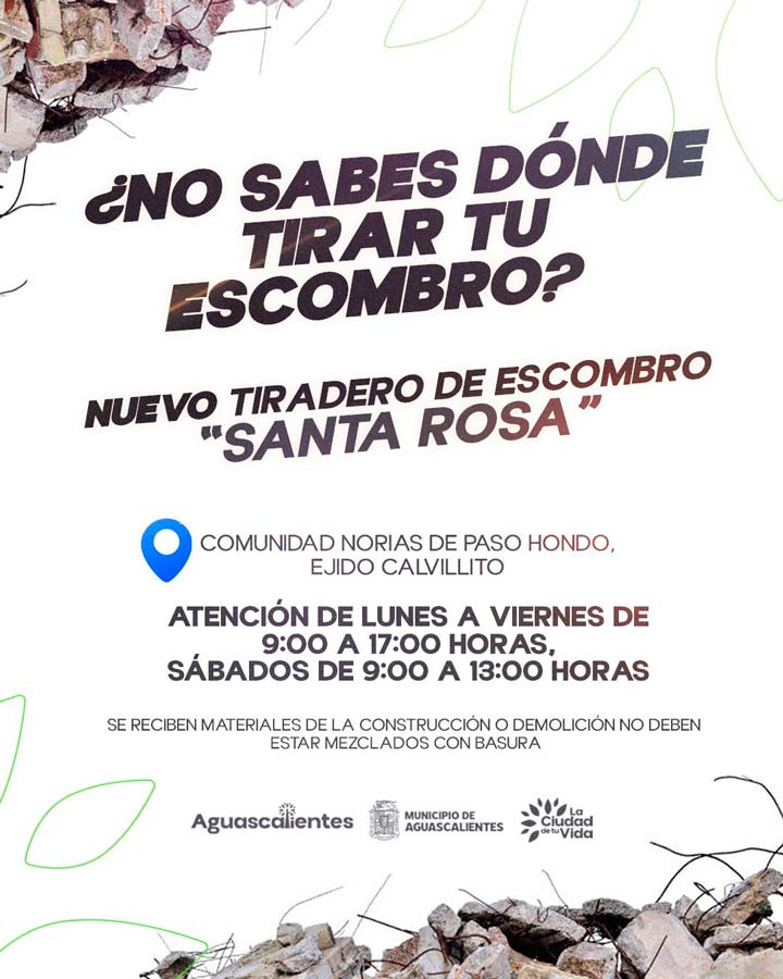 El Municipio de Aguascalientes, a través de la Secretaría de Obras Públicas Municipales (SOPMA), habilitó el nuevo tiradero de escombro “Santa Rosa”.