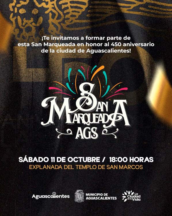 Invita municipio de Aguascalientes a celebrar el 450 aniversario de la ciudad con una San Marqueada