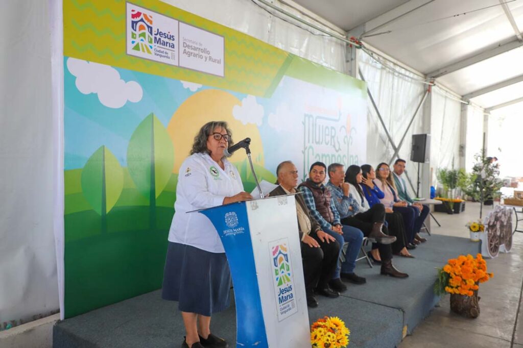 Durante su intervención, el Secretario de Desarrollo Agrario y Rural de Jesús María, Guadalupe Valtierra reconoció la labor de las mujeres productoras de comunidades como: