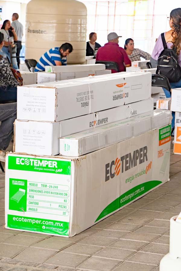 Alrededor de 100 calentadores, 25 cisternas, 85 tinacos, y más de 25 kits de baño y albañilería.