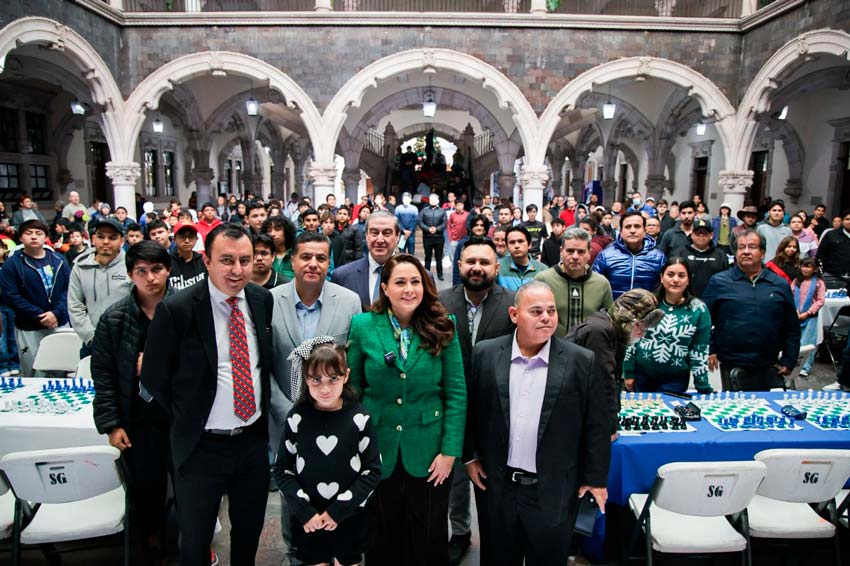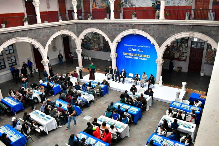 Con el movimiento inaugural la gobernadora de Aguascalientes, Tere Jiménez, dio por comenzado el Torneo de Ajedrez “Navidad en el Tablero”, el cual tuvo lugar en el segundo patio de Palacio de Gobierno.