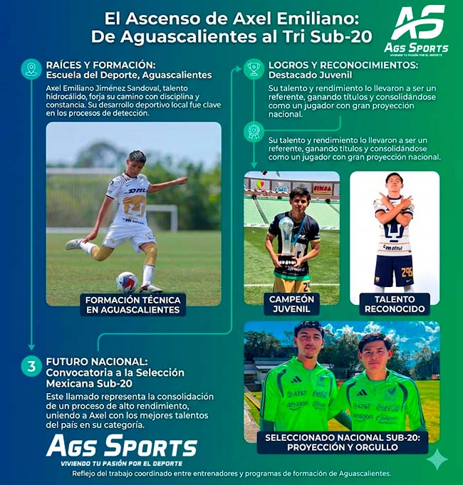 El balompié hidrocálido celebra un nuevo éxito internacional. Axel Emiliano Jiménez Sandoval, formado en la Escuela del Deporte, ha sido convocado oficialmente para integrarse a la Selección Nacional Mexicana de Futbol Sub-20, consolidándose como una de las promesas más sólidas del estado.