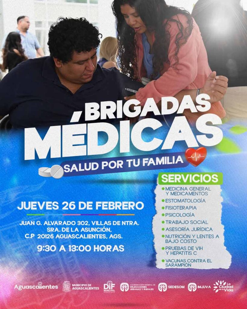 - El DIF Municipal de Aguascalientes realizará Brigadas Médicas los días 24 y 26 de febrero, ofreciendo vacunas contra el sarampión sin costo.