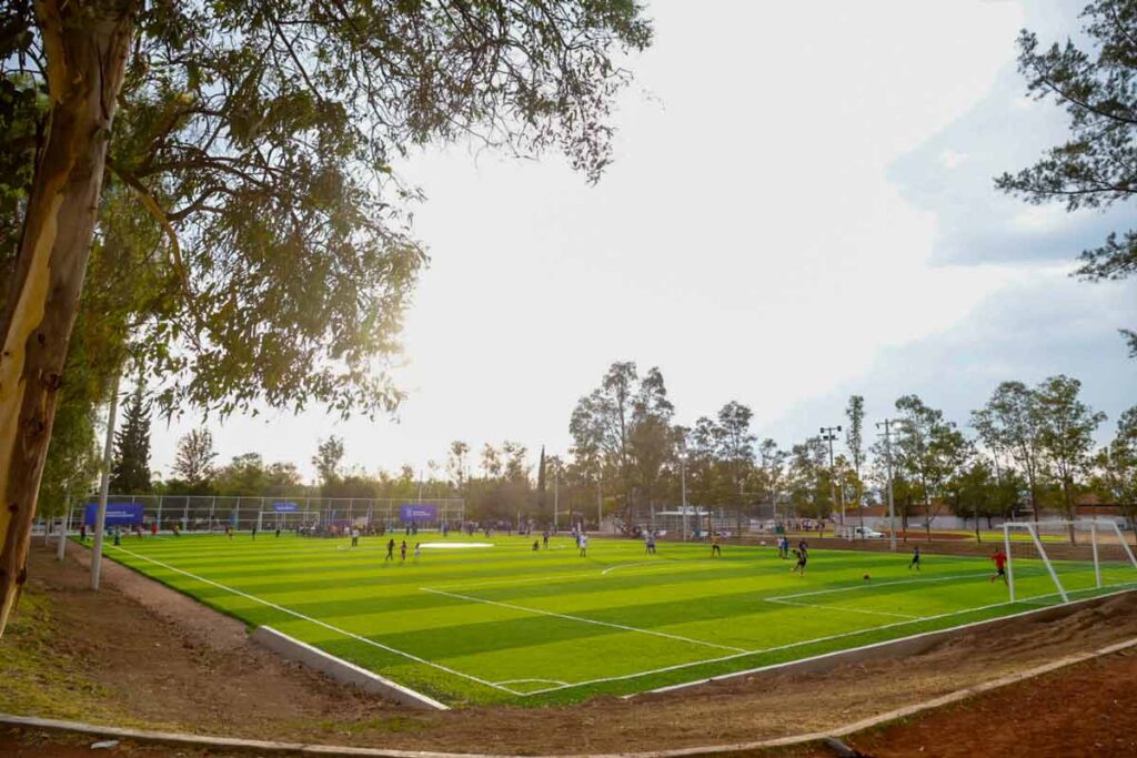 - Superficie: Instalación de 4,464 metros cuadrados de pasto sintético de alta calidad.