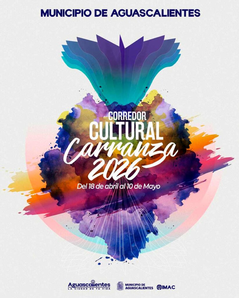 • El IMAC anunció la programación del Corredor Cultural Carranza 2026, que se llevará a cabo del 18 de abril al 10 de mayo en Aguascalientes.