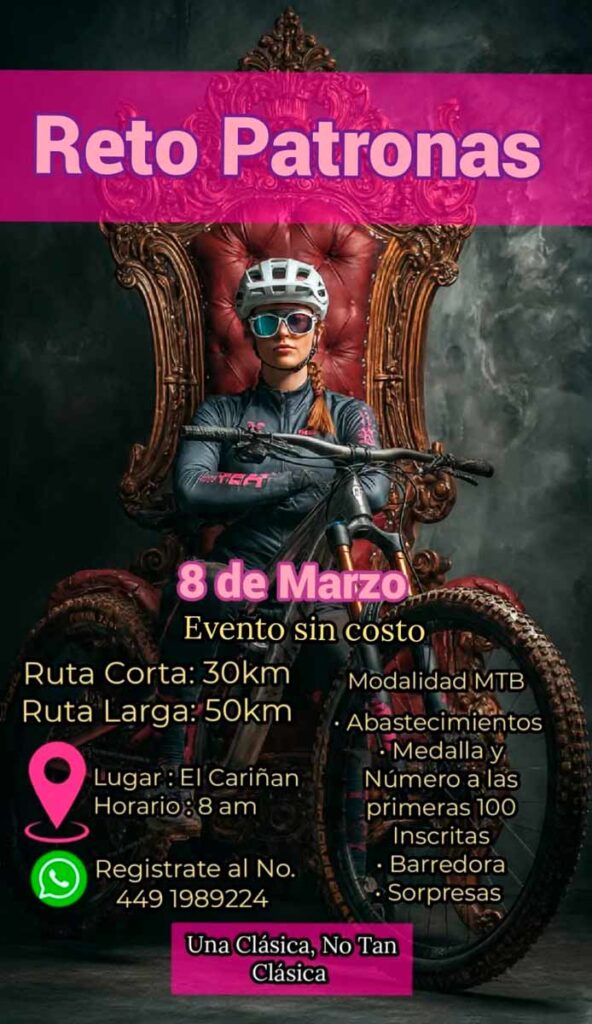 En el marco del Día Internacional de la Mujer, la comunidad ciclista de Aguascalientes se prepara para uno de los eventos más esperados del año: el Reto Patrona. Bajo el lema “Una Clásica, No Tan Clásica”, esta rodada de montaña (MTB) promete ser una experiencia de superación, deporte y convivencia en un entorno natural privilegiado.