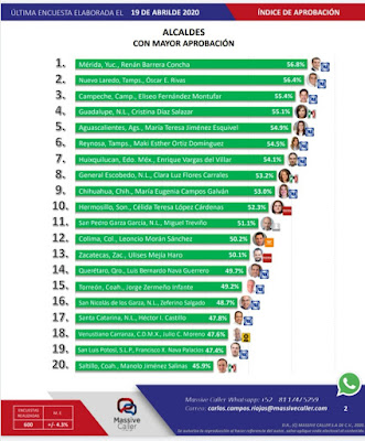Alcaldes que presentó Consulta Mitofsky en marzo de este 2020, en el que la