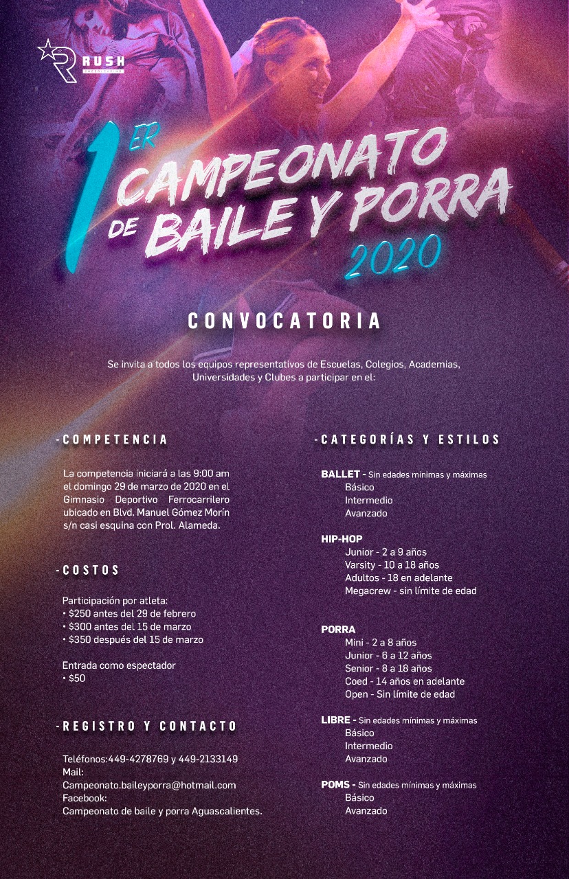 El 29 de marzo el Campeonato de baile y porra en Aguascalientes