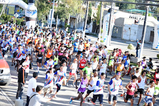 salida de la carrera atlética, donde la gente camino, troto y corrió el circuito trazado por las calles de aquel