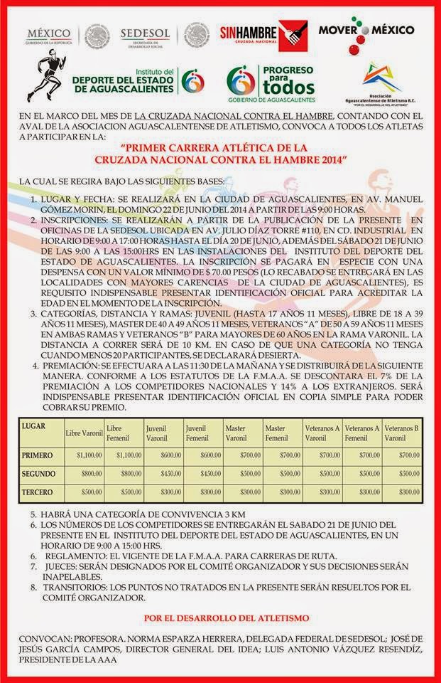 carrera atlética de la Cruzada Nacional contra el Hambre 2014 este domingo por