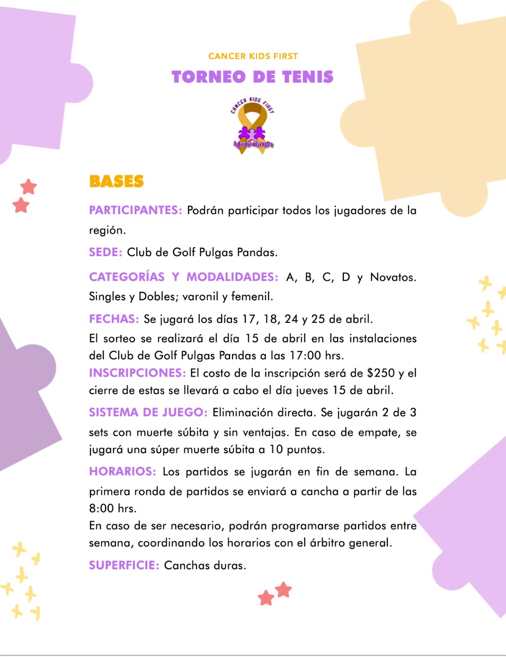 Este fin de semana torneo de tenis en pro de niños con Cáncer en Aguascalientes.