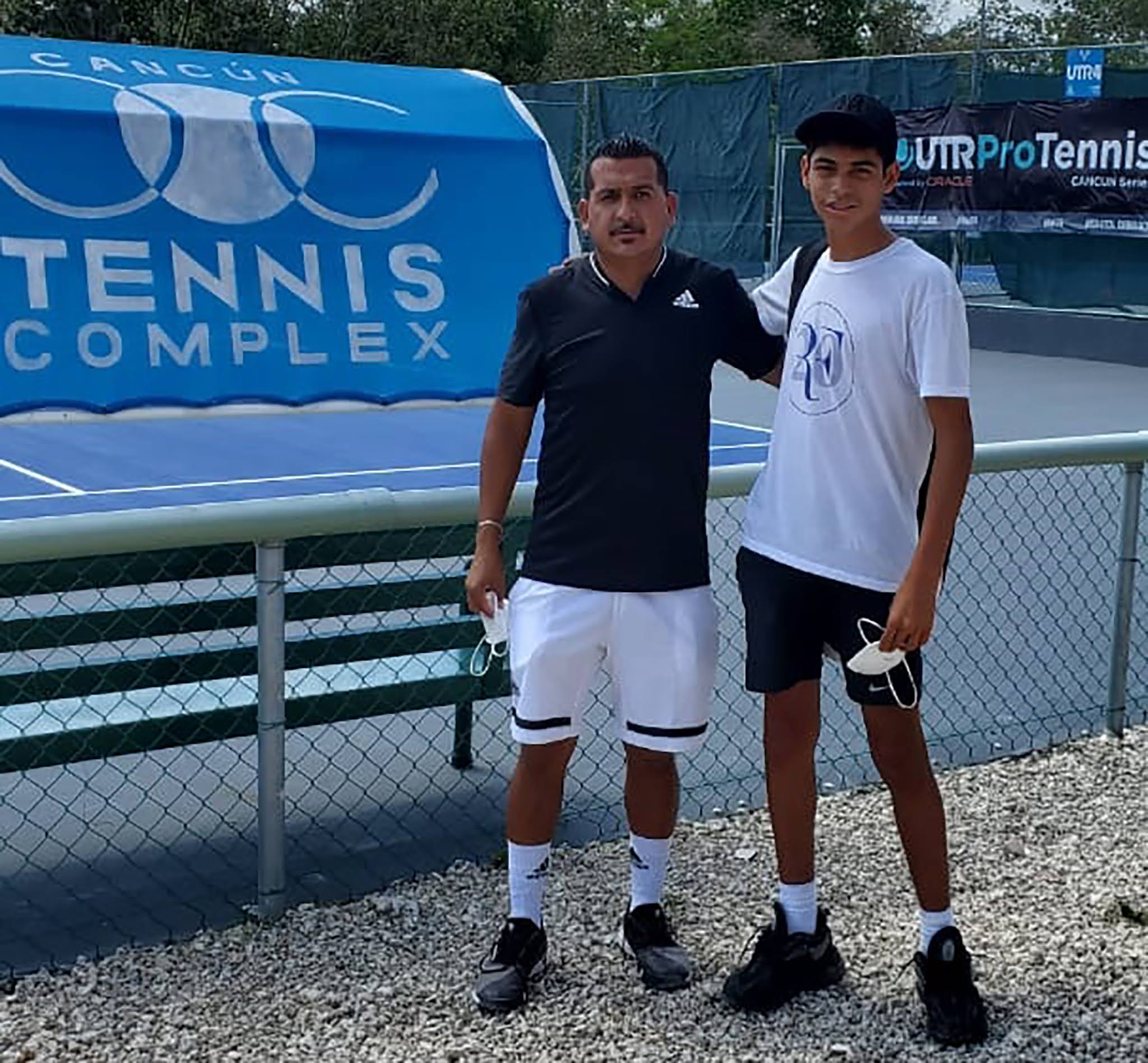 el tenista del Club Pulgas Pandas acompañado por su entrenador Juan Carlos